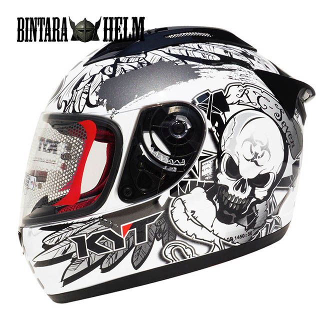 PROMO HELMET HELM KYT RC 7 MOTIF #13 WHITE GUNMETAL BLACK HELM FULL FACE SINGLE VISOR KYT RC SEVEN ORIGINAL