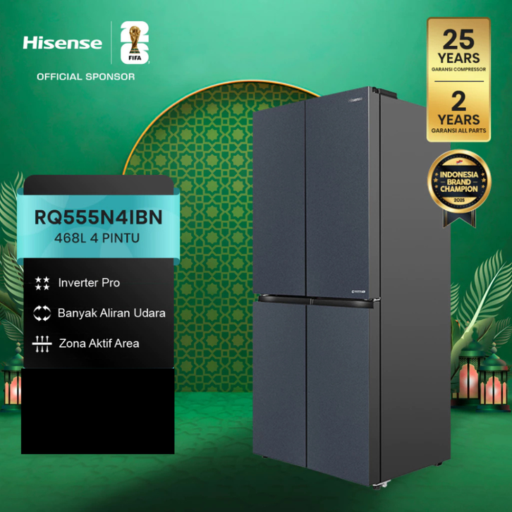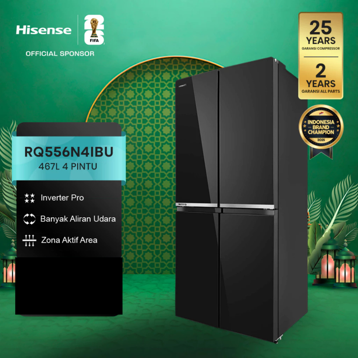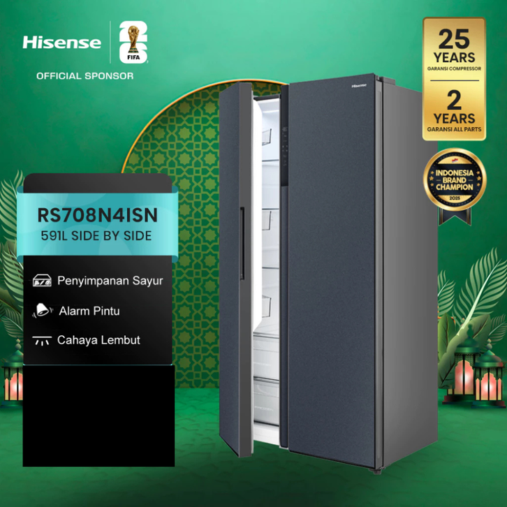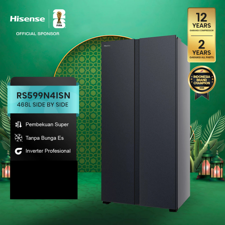 KULKAS HISENSE 4 PINTU SIDE BY SIDE REFRIGERATOR KAPASITAS 591 468 467 LITER INVERTER TANPA BUNGA ES FREEZER JUMBO MURAH