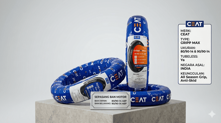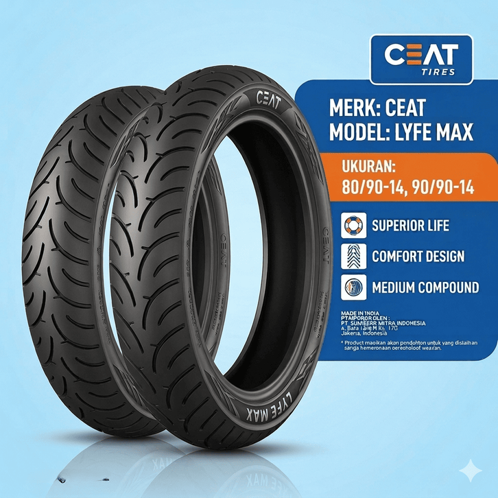 Sepasang / Satuan Ban Motor Ring 14 80/90 & 90/90 Ceat Gripp Maxx / Ceat Lyfe Max Tubeless Mio, Vario