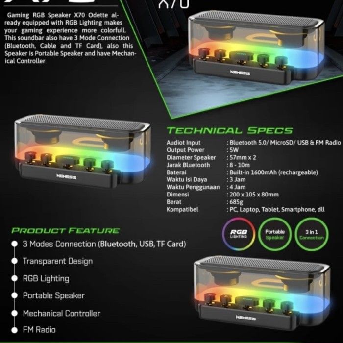 ORIGINAL NYK NEMESIS X70 ODETTE BLUETOOTH SPEAKER SOUNDBAR WITH RGB