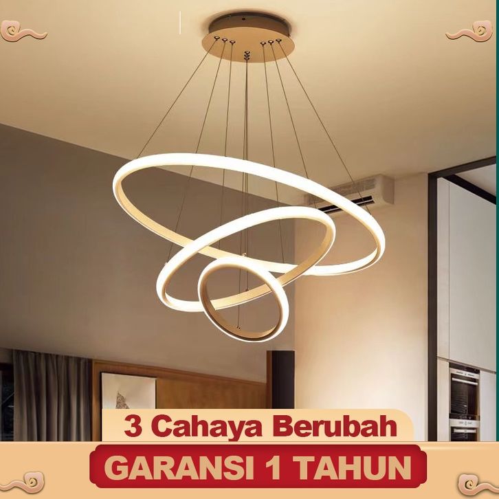 〠Garansi 1 Tahun 】Lampu Gantung Minimalis Modern RUANG TAMU - Lampu Gantung LED 3 Ring Modern Untuk Kamar Tidur