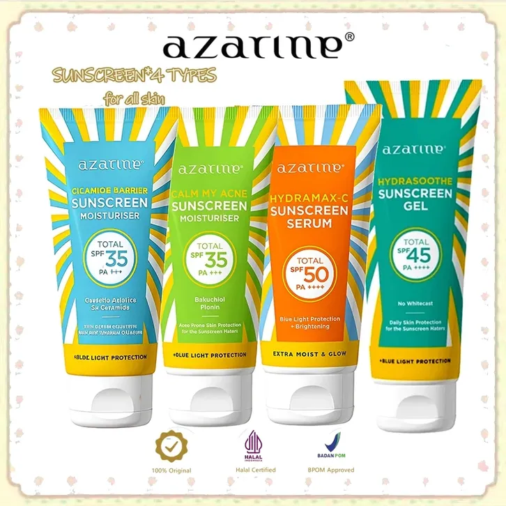 AZARINE Aqua Essence Sun Shield Serum SPF 50 PA+++ & Hydrasoothe Sunscreen Gel SPF45+++ tabir surya/ sunscreen mist