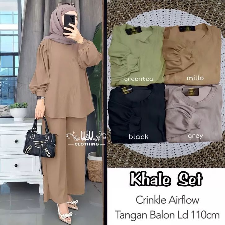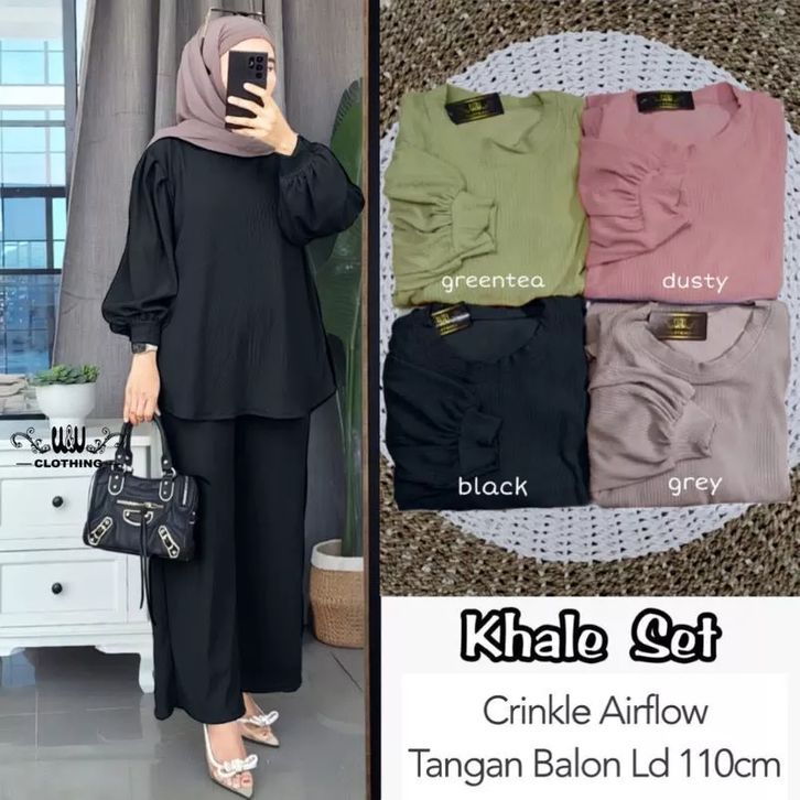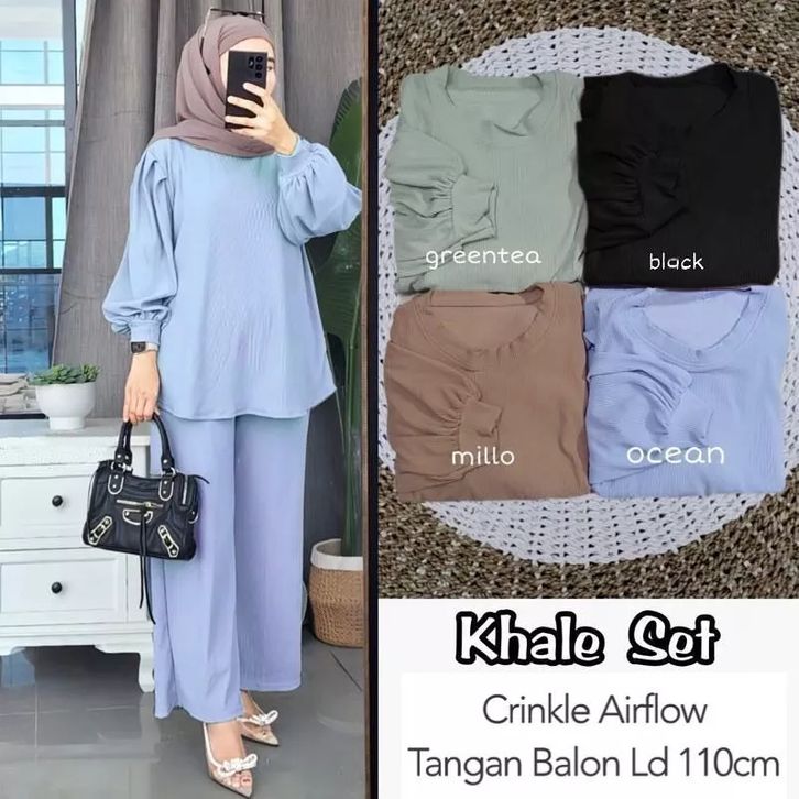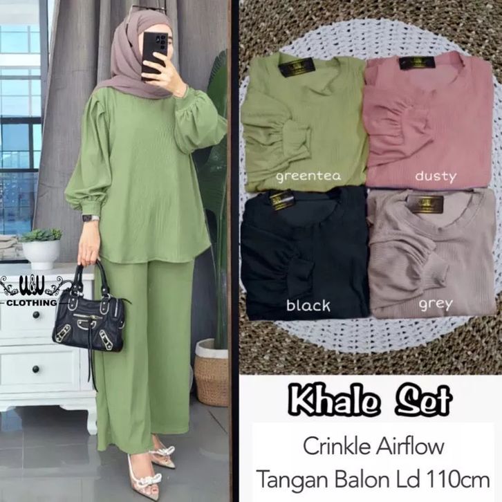 NEW KHALE SET TANGAN BALON CRINKLE AIRFLOW LD 110 // SETELAN KHALE // ONE SET KHALE // SET WANITA POLOS