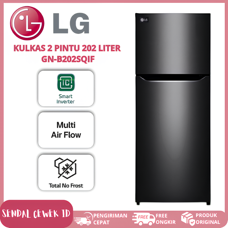 Kulkas 2 Pintu LG 202L / 187L Smart Diagnosis Inverter Matte Black Model GN-B202SQIF Tanpa Bunga Es Terbaru Free Ongkir