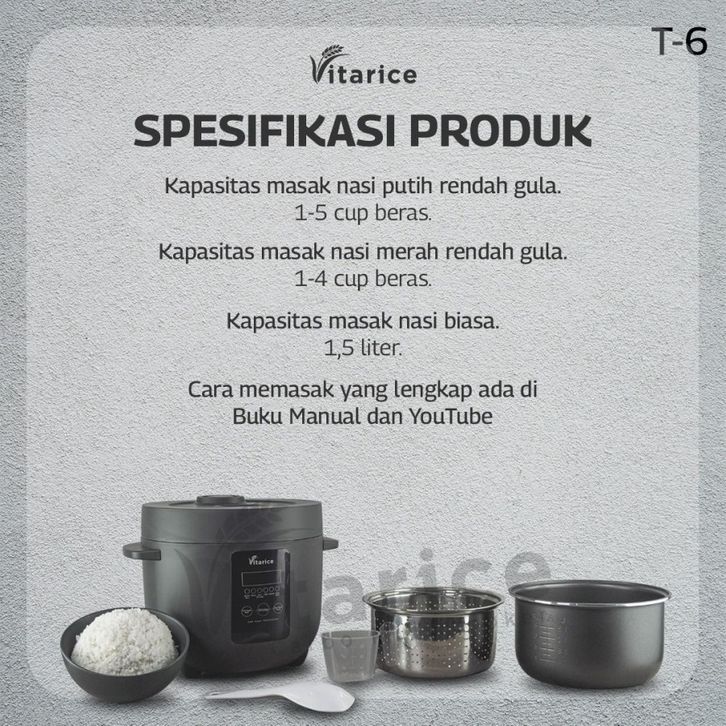 MAGIC COM PENANAK NASI MEJIKOM VITARICE T6 LOW CARBO MULTI RICE COOKER PENANAK NASI RENDAH GULA