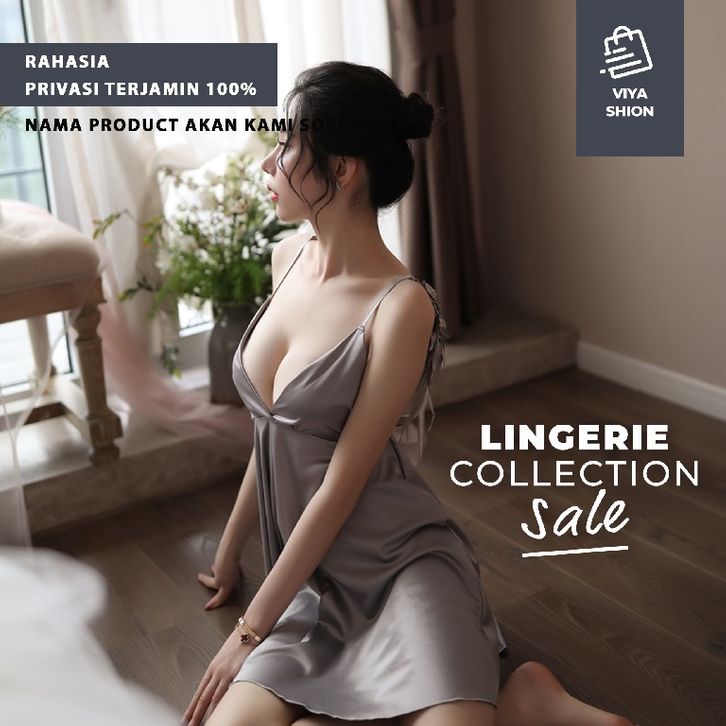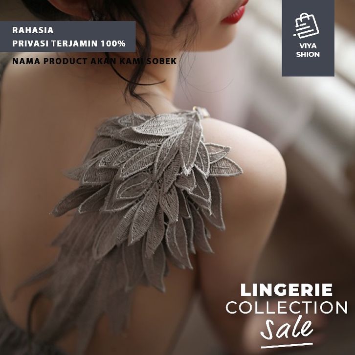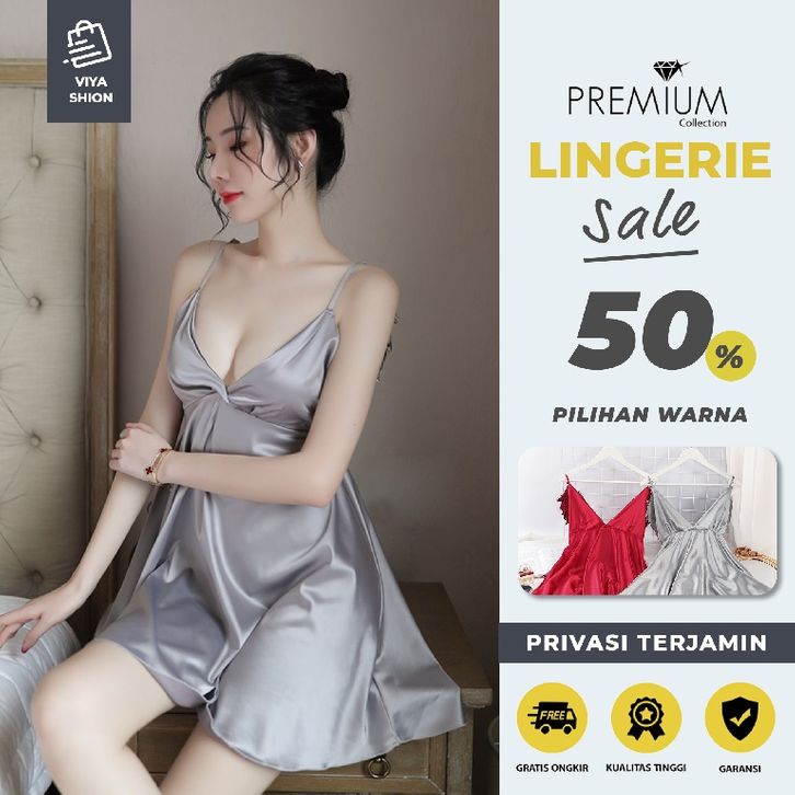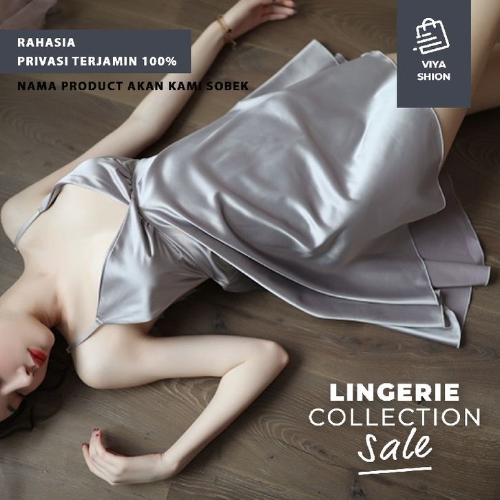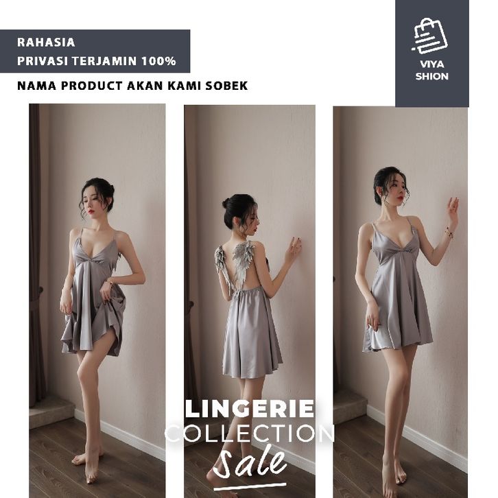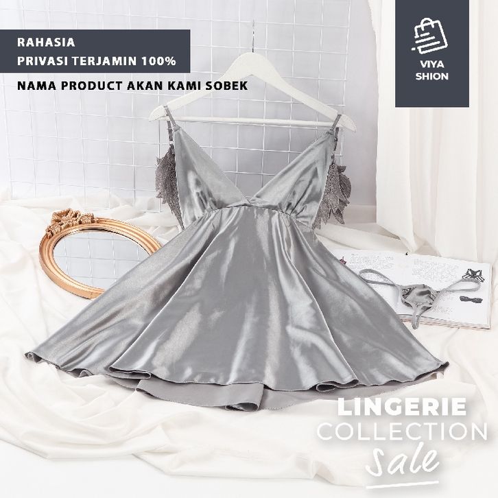 Lingerie Sexy Kimono Set Dress Gaun Piyama Baju Tidur Seksi Wanita Abu Abu Grey Cosplay Hot Dewasa Premium MEL66
