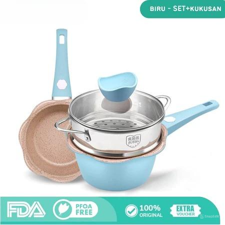 Panci Mpasi Baby Cookware Full Set Anti Lengket 16cm Kukus Rebus Serbaguna Granite Die Cast Multifungsi Teflon Susu