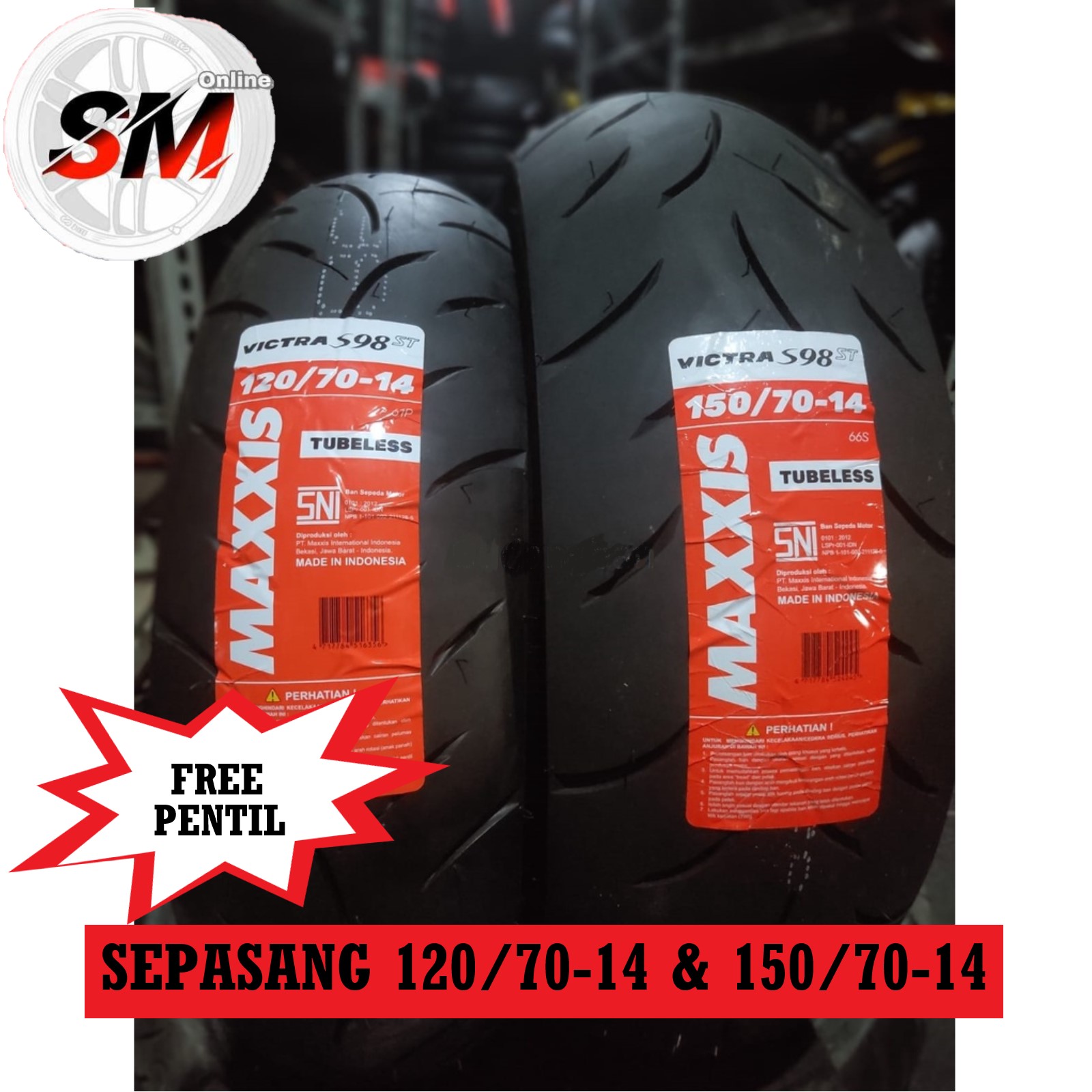 Paket Ban AEROX Maxxis Victra 120 70 14 dan 150 70 14 Ban Luar Motor TUBELESS FREE PENTIL
