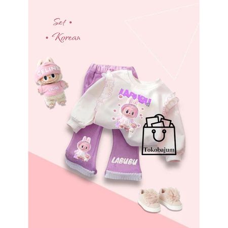 [Star] SETELAN ANAK PEREMPUAN LABUBU BAHAN BABYTERRY CELANA CUTBRAY USIA 1-5 TAHUN SETELAN ANAK PEREMPUAN TERBARU PAKAIA