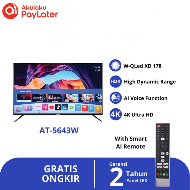SMART TV AKARI 50 43 32 INCH TELEVISI ANDROID LED DIGITAL MURAH AT-5643W 4K TERBARU WIFI ORIGINAL KREDIT BEST SELLER