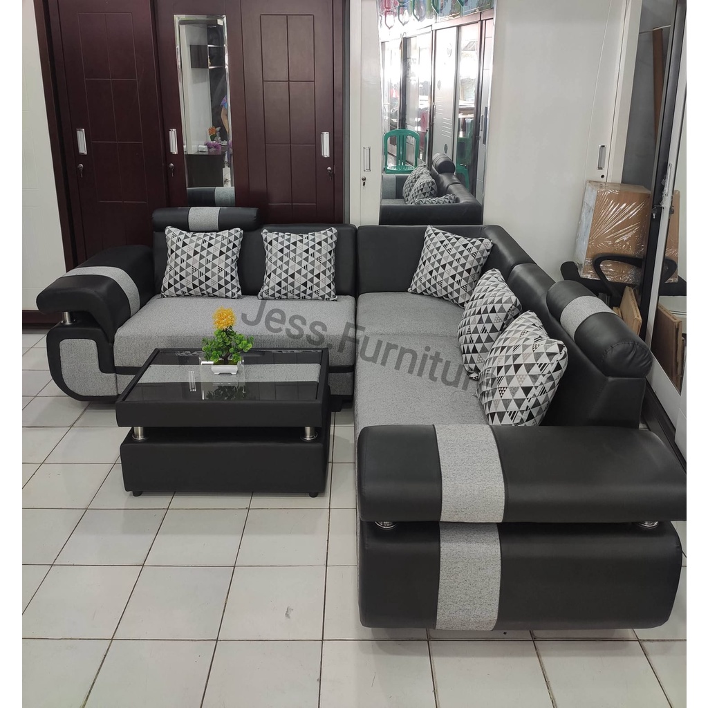 SOFA L , SOFA SUDUT MINIMALIS SOFA RUANG TAMU / SOFA MINIMALIS KULIT SOFA OSCAR KOMBI KAIN RUANG TAMU