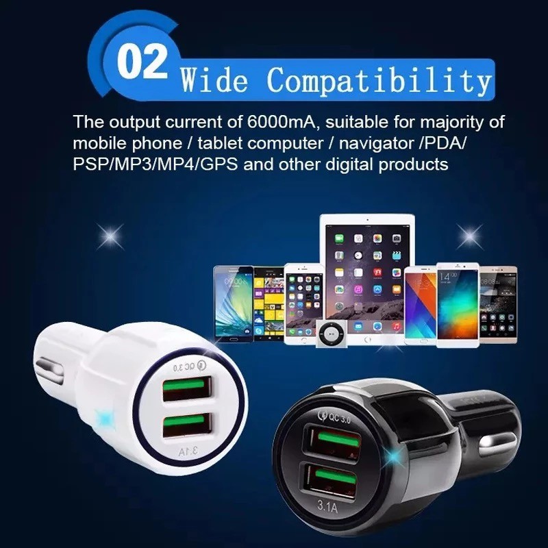 USB Casan Mobil Charger Mobil Fast Charging 3.0 3.1A 2 Port QUALCOMM