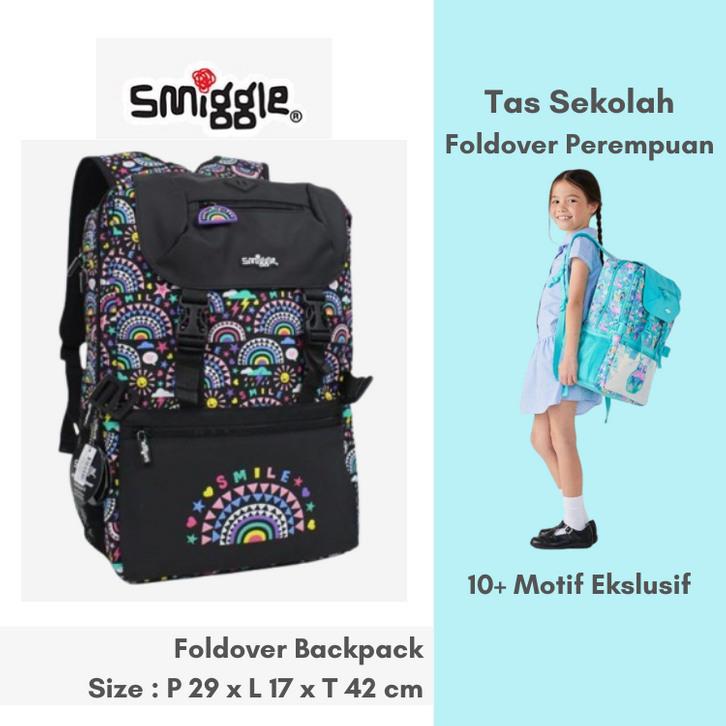[Mall] Tas Sekolah Anak Perempuan Smiggle Foldover SD SMP Senior Series Besar Unicorn Cat FlamingoTebal Awet Brand Viral