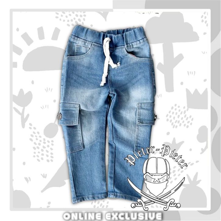 Celana Cargo Anak Bahan Jeans Strerch Mulur Elastis Model Kekinian