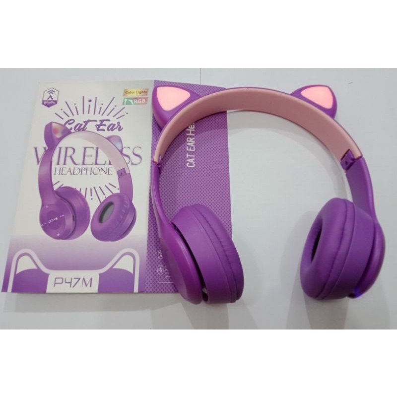 Headphone Bluetooth Model Telinga Kucing LED Wireless Stereo Bass P47M