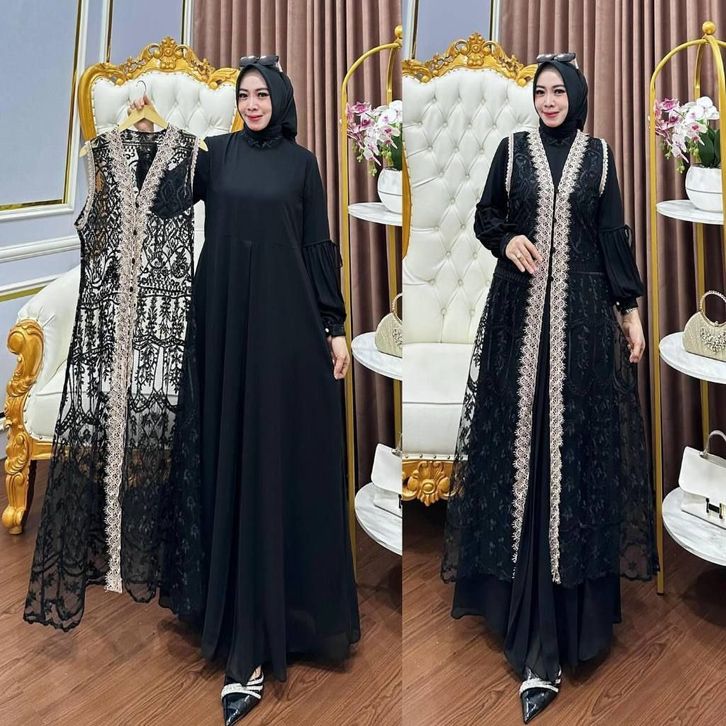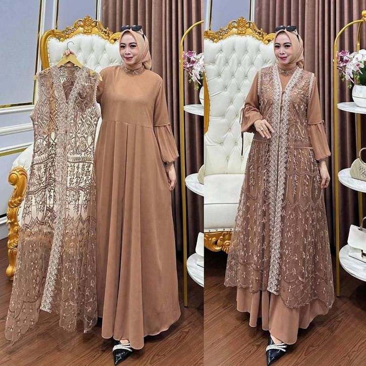 Dress Wanita Terbaru Lebaran Gamis Mewah Simpel Elegan Pesta Kondangan Gamis Brukat Mix Renda Mewah