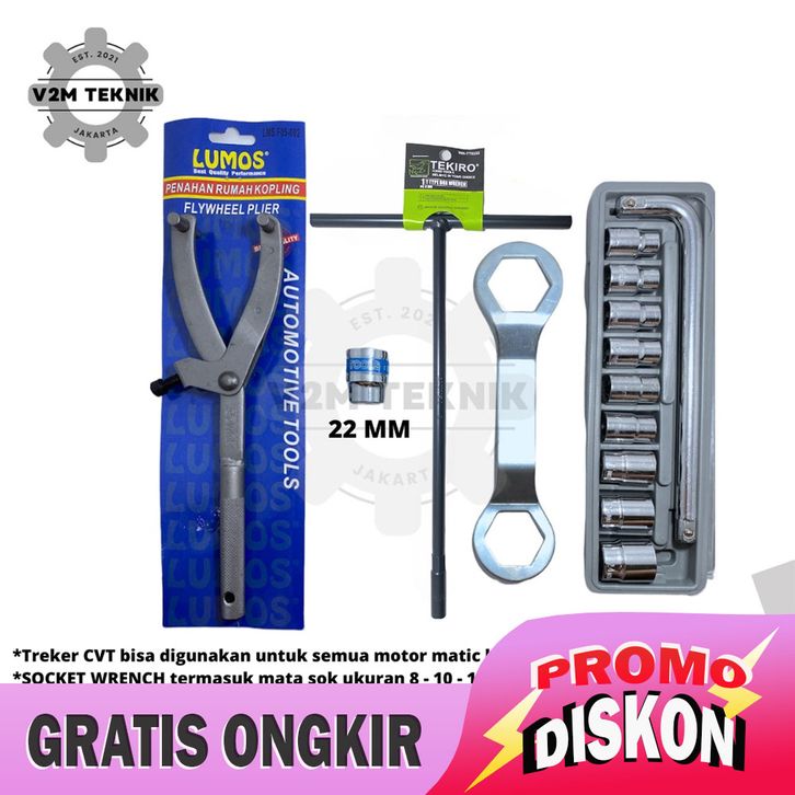 CICILAN/PAKET KOMPLIT TREKER CVT + KUNCI 39X41 MM + KUNCI T 8 MM + SOCKET WRENCH SET 10 PCS 8-24 MM + MATA SOK 22 MM / P