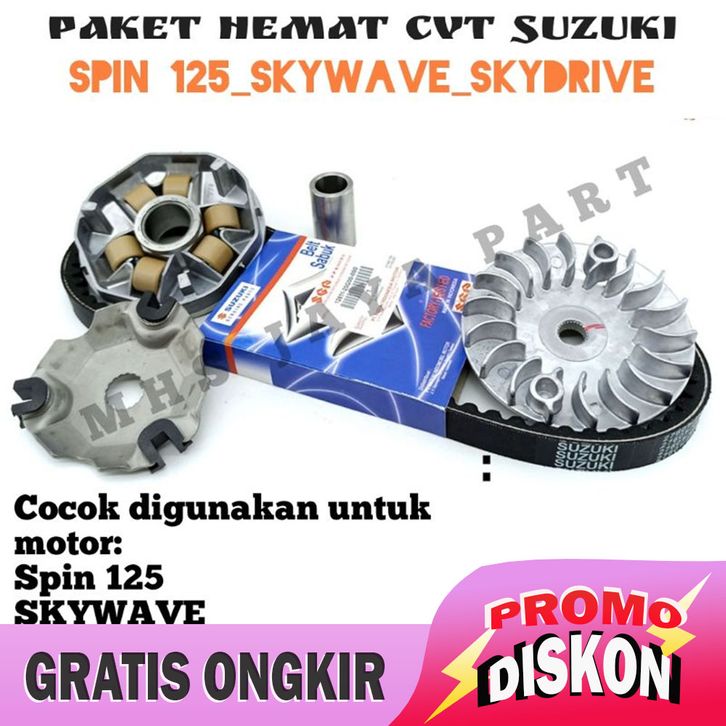 CICILAN/PAKET HEMAT CVT SPIN 125 SKYWAVE SKYDRIVE SUZUKI HAYATE PAKET CVT SPIN (VANBELT+RUMAH ROLLER ASSY+KIPAS SPIN)