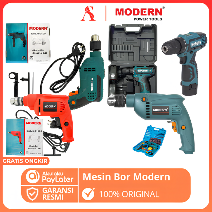 Mesin Bor Modern M2100C M2130 Mesin Bor Tangan Impact Electric Drill bor kayu besi beton Bor Cordless Bor Obeng bor set