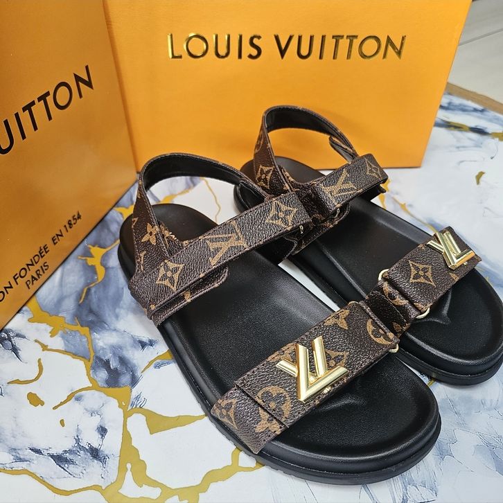 SANDAL WANITA LV SUNSET LEATHER MIRROR FULL SET/SENDAL TALI BRANDED FASHION WANITA TERBARU