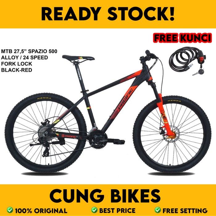 PACIFIC SEPEDA GUNUNG MTB 27.5 TYPE SPAZIO 500 2 X 8 SPEED SHIMANO FORK LOCK OUT