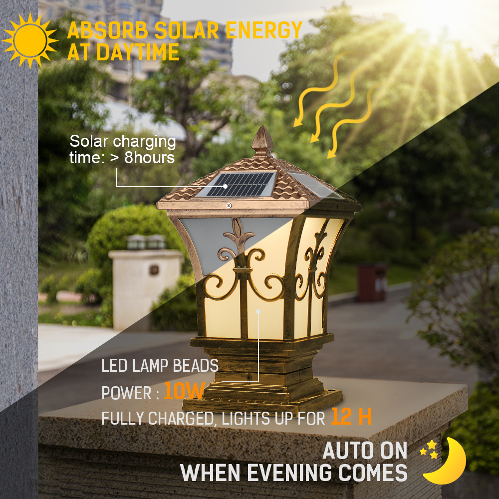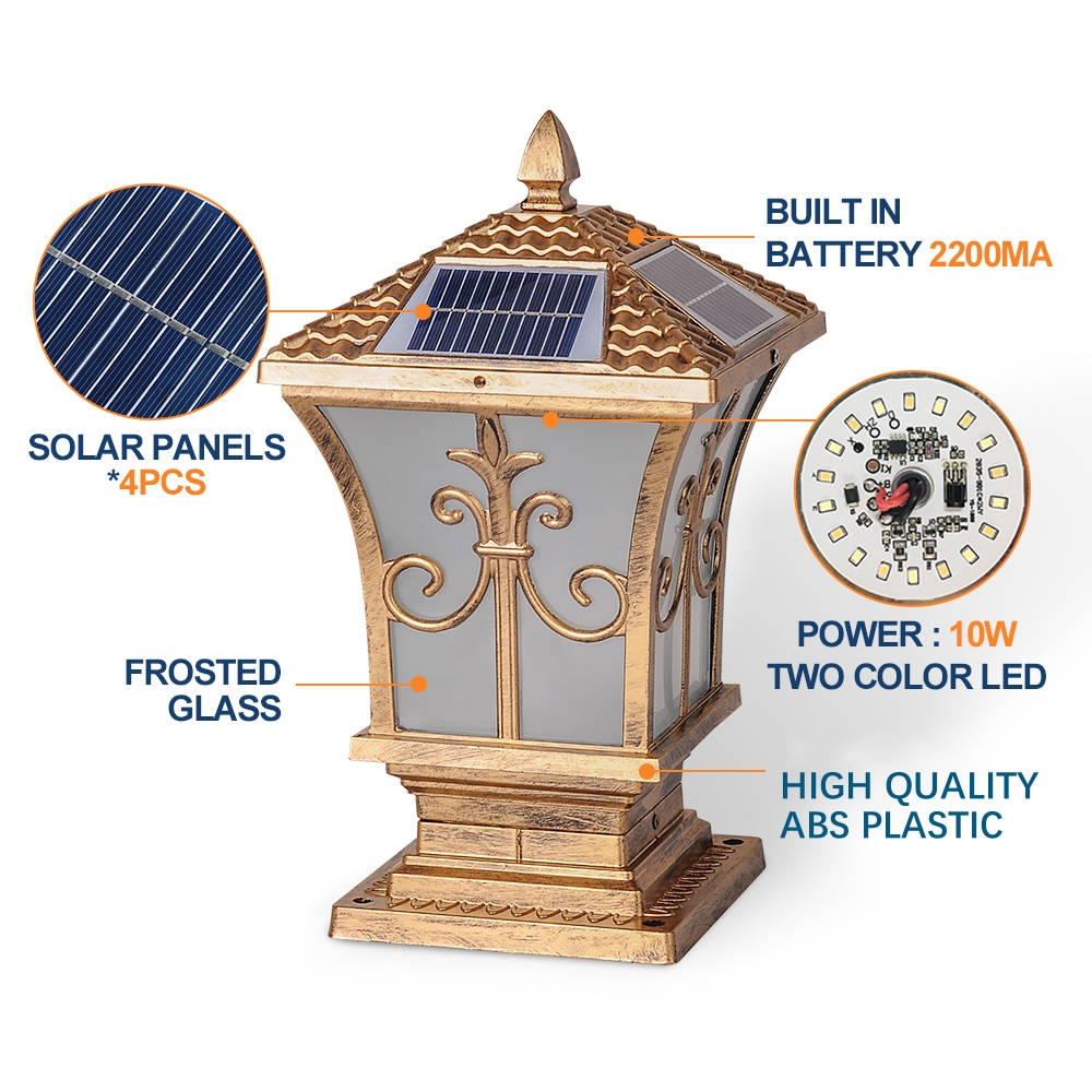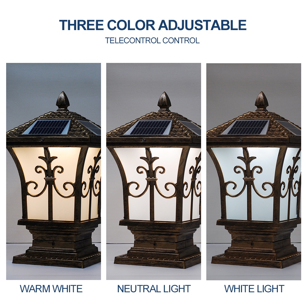 RONG RIVER 10W LAMPU TAMAN TENAGA MATAHARI 3 WARNA OUTDOOR LAMPU PILAR KENDALI JARAK JAUH