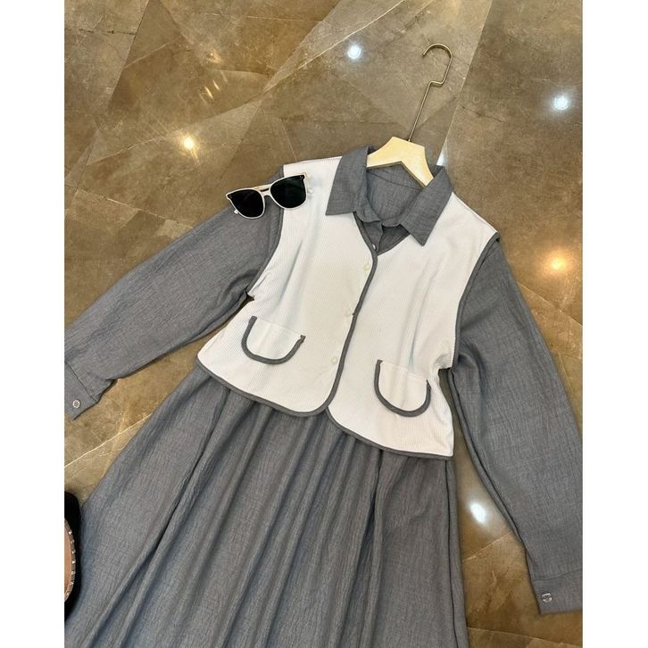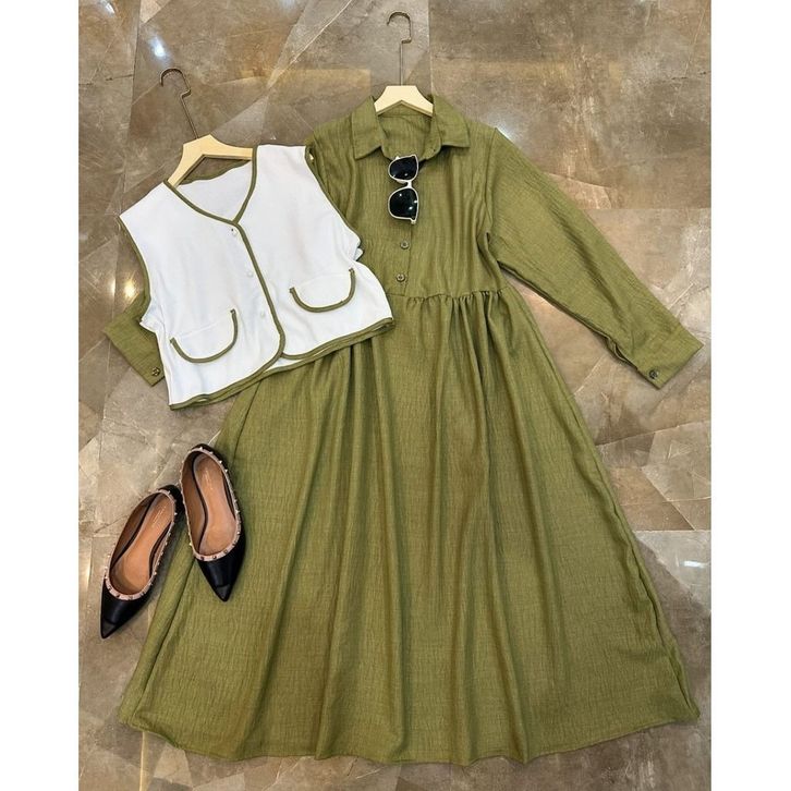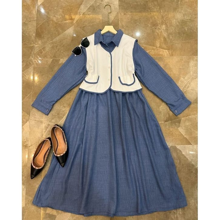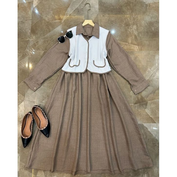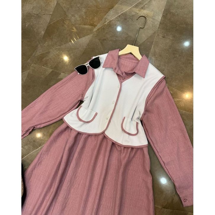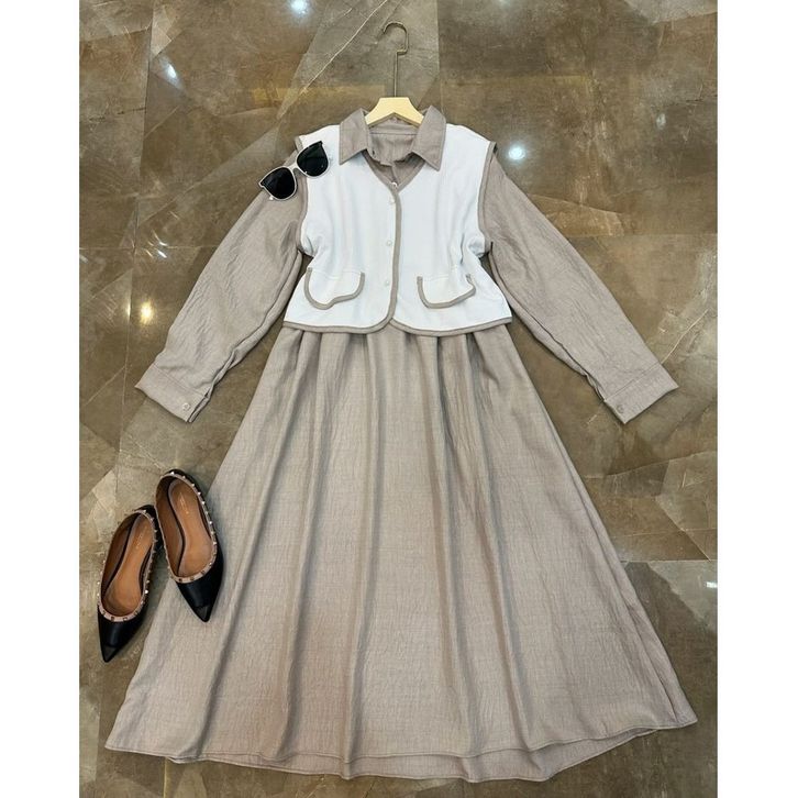 Davici Midi Dress Wanita Muslim Matt Knite Mix Cringkle Polos Premium OOTD Casual Daily