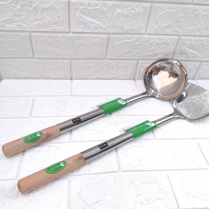 Sodet Irus Jumbo Gagang Kayu Ladle Spatula Sutil Resto Besar Panjang - Sutil Kayu 38