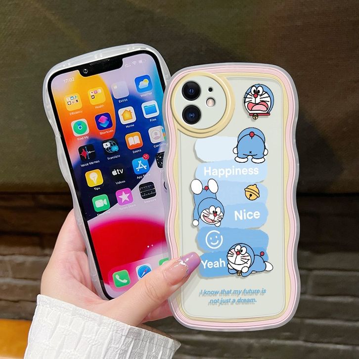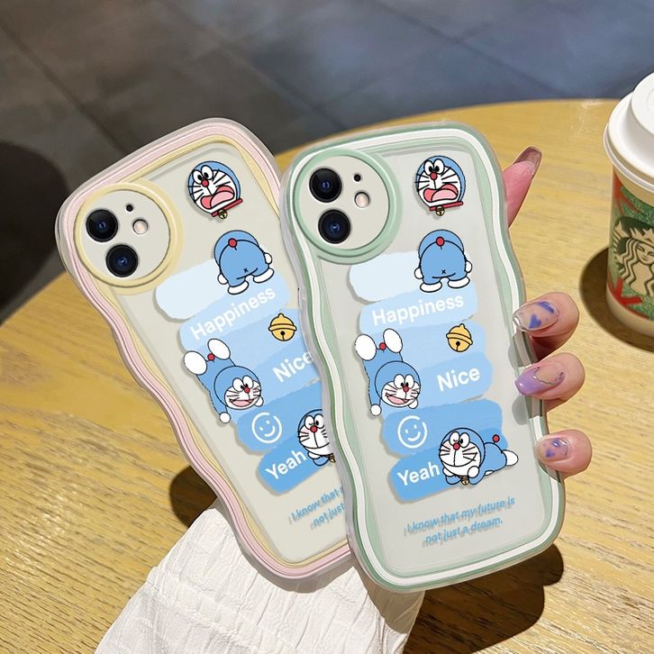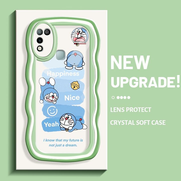 Casing Ponsel untuk Infinix Hot 10 Play Hot 11 Play Hot 9 Play X680 X688C Casing Doraemon Cream Gelombang Perbatasan Lem