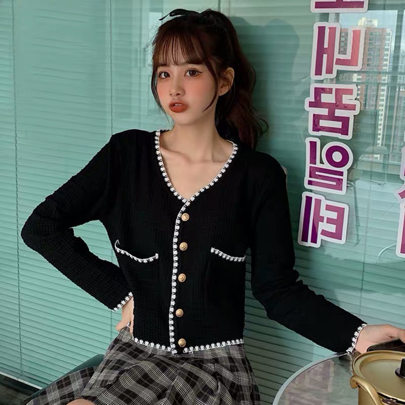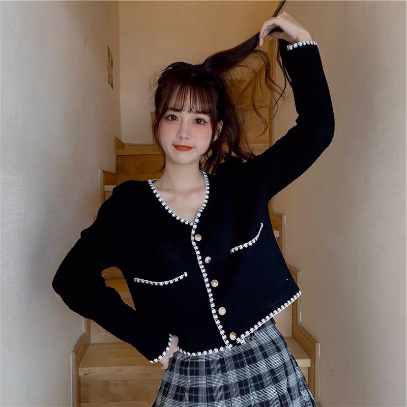 YIYI GIRL Atasan Cardigan Wanita Lengan Panjang Bahan Rajut Sweater crop