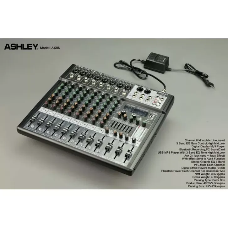 AX8N VERSI BARU MIXER ASHLEY AX8N ( 8CH FULL ) USB,MP3,BLUETOOTH ORIGINAL