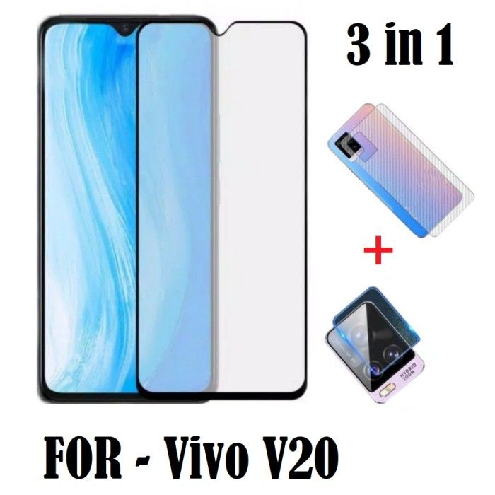 Paket 3 in 1 Viv o V20 Anti Gores Kaca + Camera Lens + Garskin