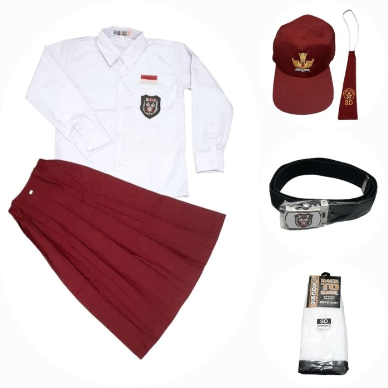 Setelan Seragam Sekolah SD Perempuan Baju Panjang Rok Panjang Lengkap