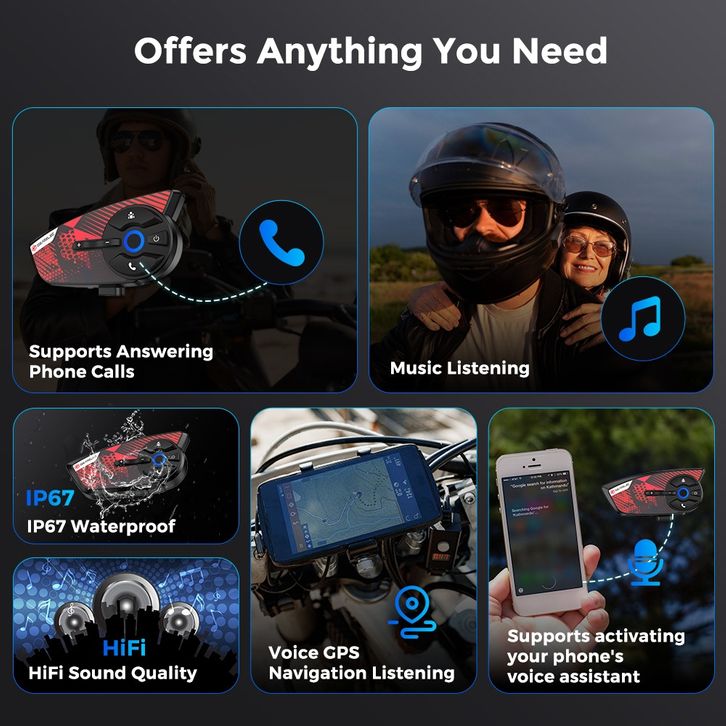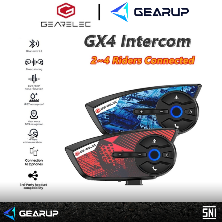 Intercom Helm Waterproof GEARELEC GX4 Intercom Headset Bluetooth Helm SepedaMotor 1500M 4Riders IP67 waterproof Music Sh