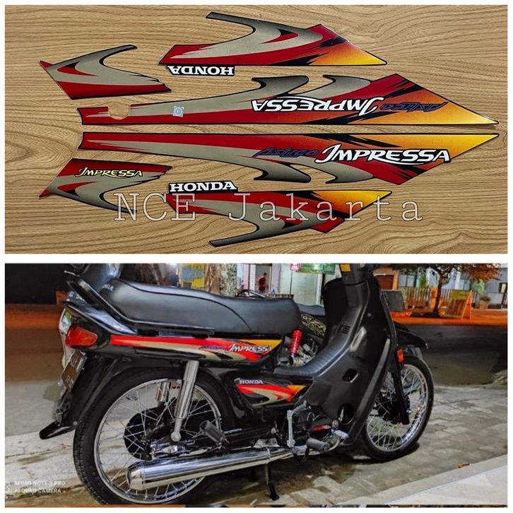 STIKER STRIPING MOTOR GRAND ASTREA IMPRESSA 2001 2002 HITAM LIS MERAH GOLd