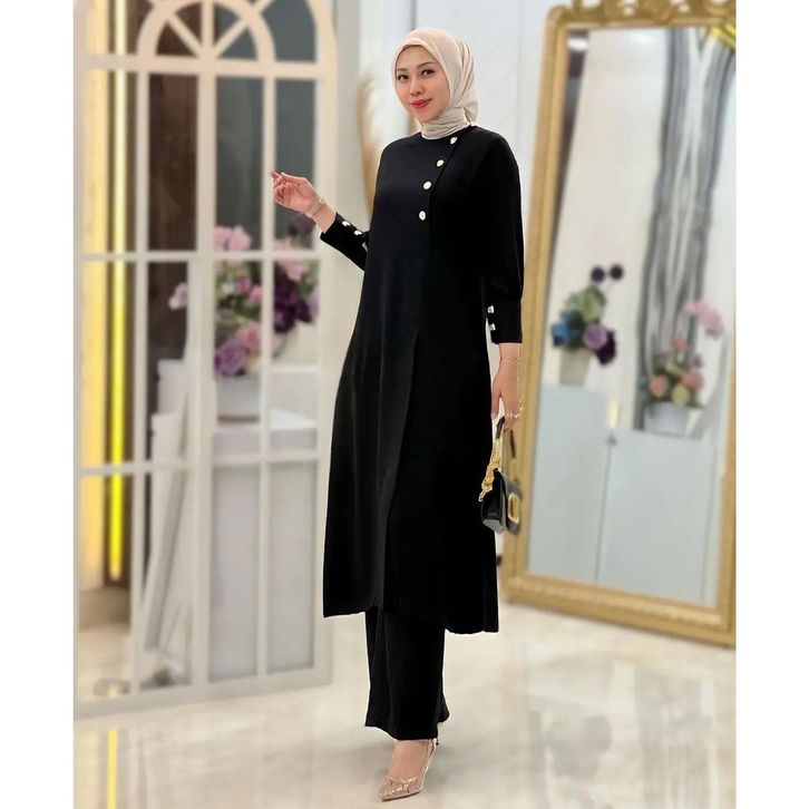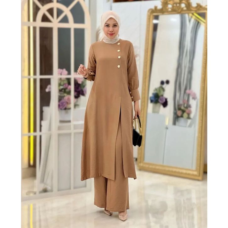 Vallina Outfit - Adeline One Set Muslim Wanita Crinkle Premium Setelan Baju 2in1 Setcel Kondangan Pesta Kekinian Terbaru
