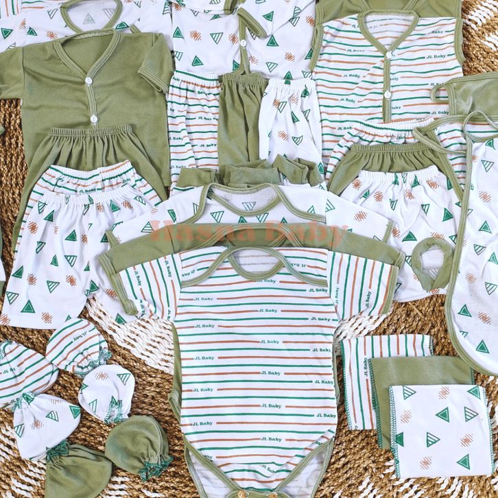 36 PCS PAKET BAJU BAYI BARU LAHIR PAKAIAN NEW BORN LENGKAP SERI HIJAU SAGE KARAKTER LUCU SARTAKI JUMPER POPOK TALI DLL