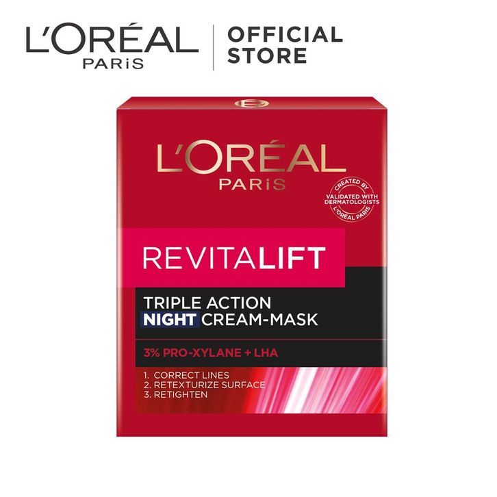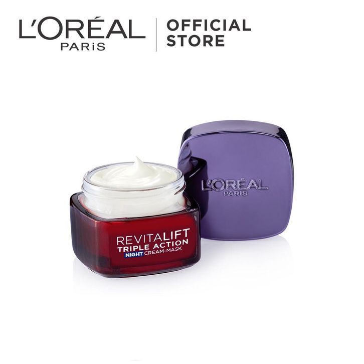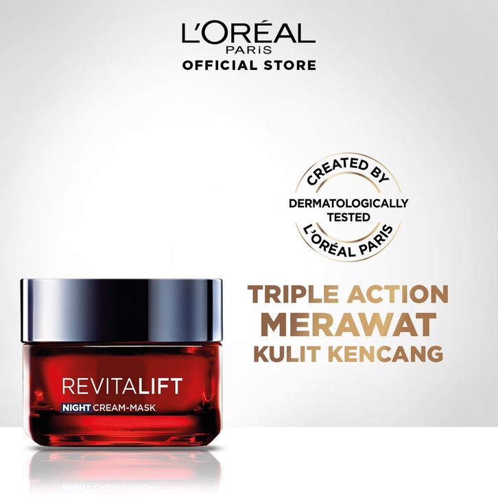 L'Oreal Paris Revitalift Triple Action Night Cream Skin Care - 50ml (Krim Malam Untuk Kulit Cerah Tampak Muda)