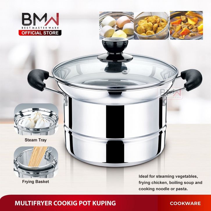 Deep Fryer BMW Panci Goreng Rebus Kukus Tutup Kaca Serbaguna