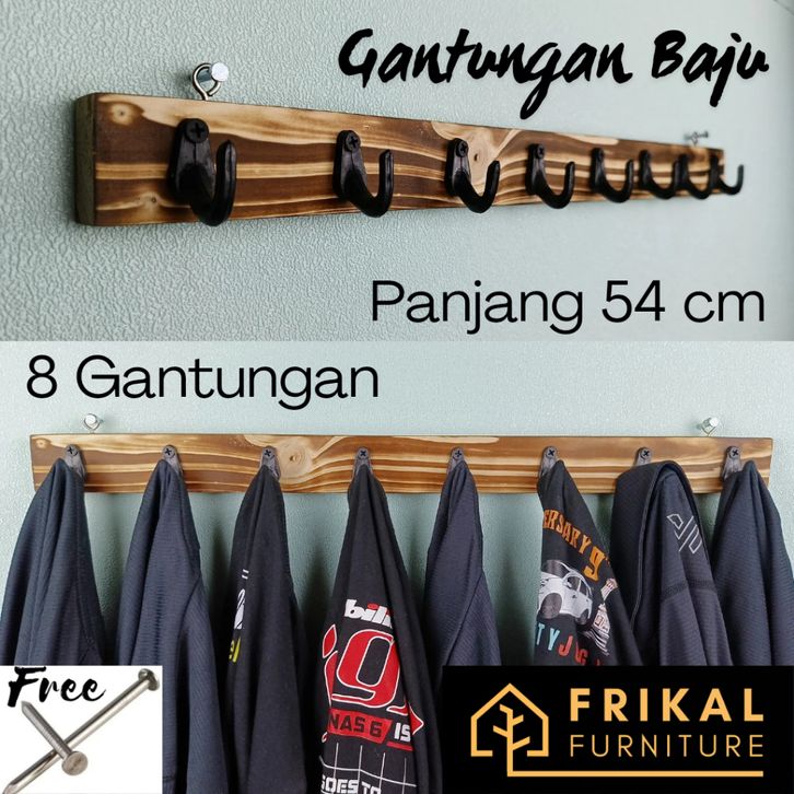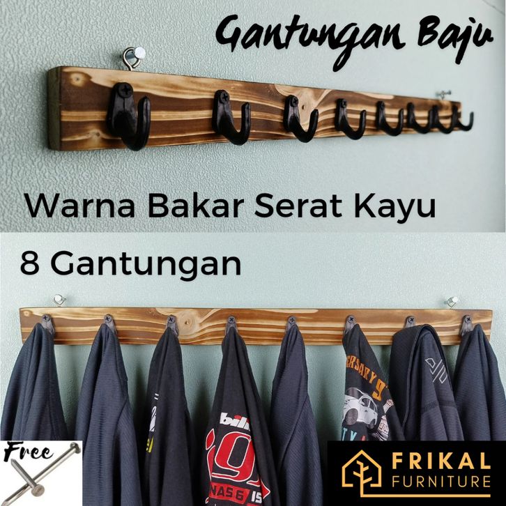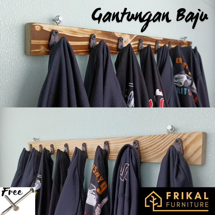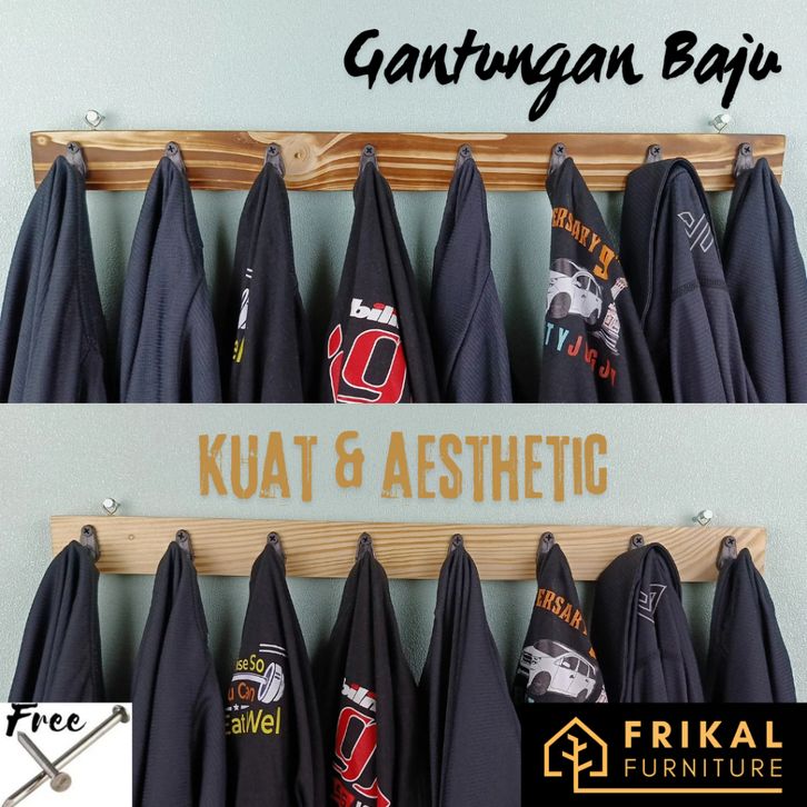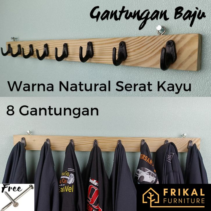 Gantungan Baju - Gantungan Tempat Cantolan Baju Pakaian Tempel Dinding Aesthetic Minimalis Bahan Kayu 8 Kapstok