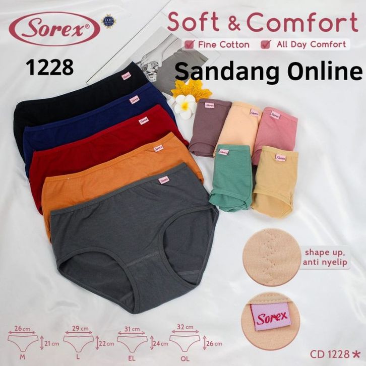 6 PCS Celana dalam wanita sorex 1228 Katun Cutting Midi Basic Sorex