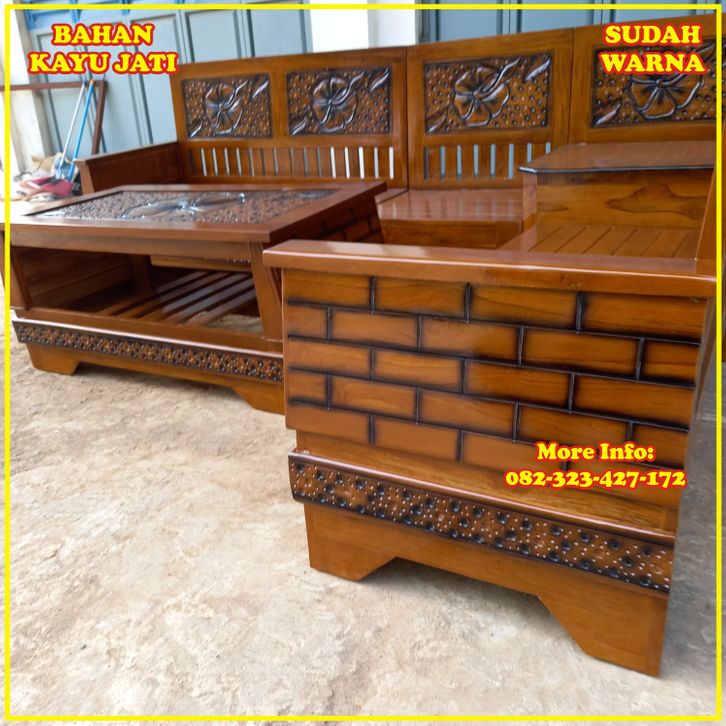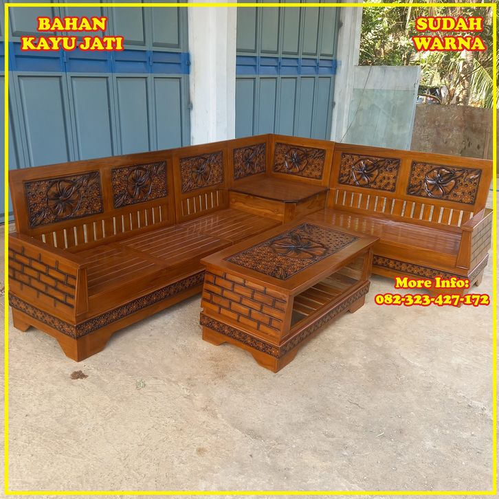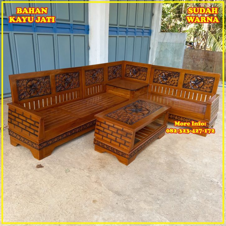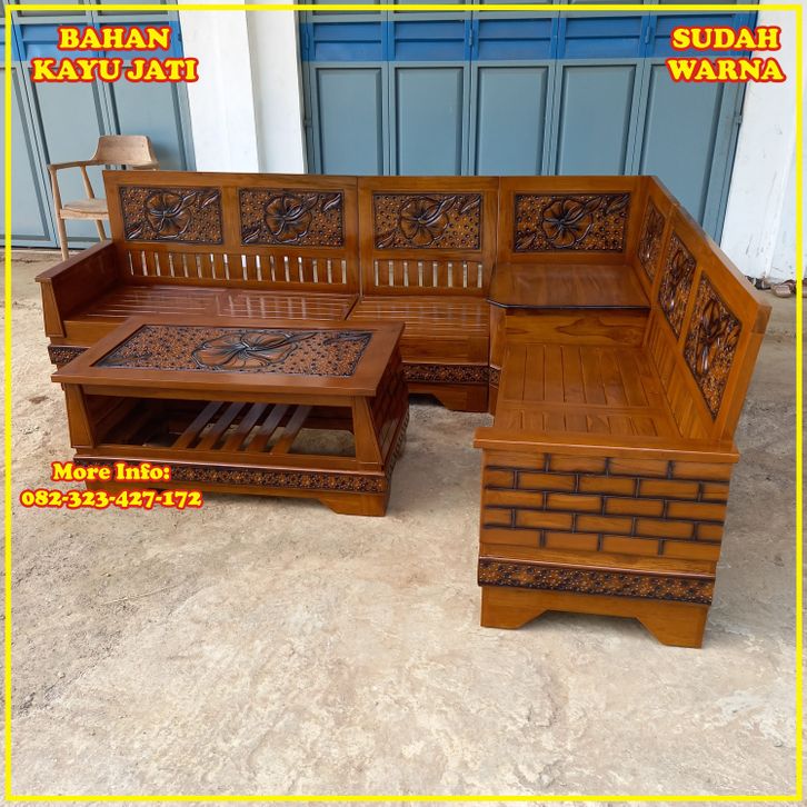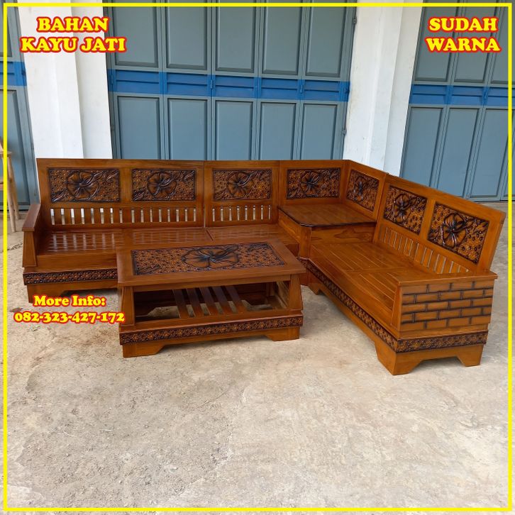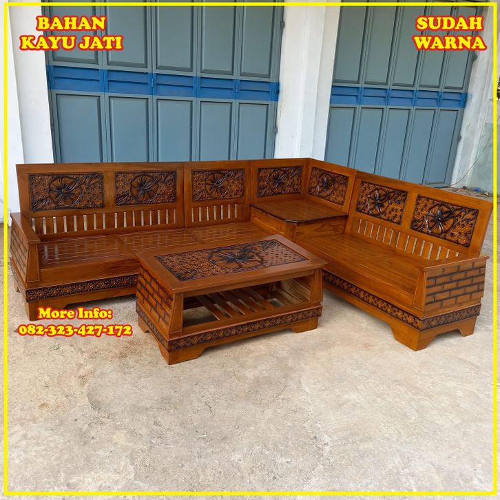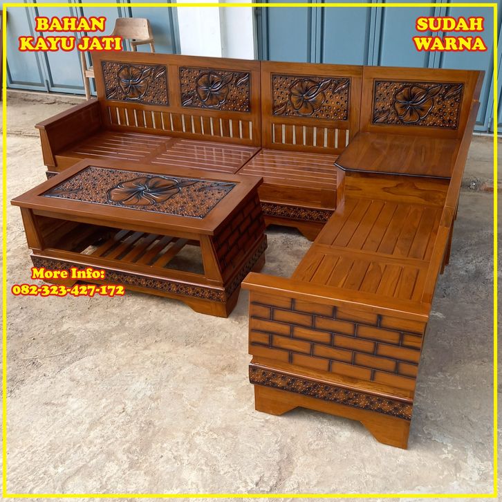 Kursi Sudut L Ruang Tamu Kayu Jati Set Meja Tamu Minimalis