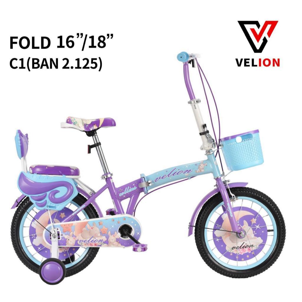 SEPEDA LIPAT ANAK LAKI-LAKI PEREMPUAN VELION SIZE 16 18 INCH FITUR FRAME DILIPAT KERANJANG BONCENGAN KARAKTER TERMURAH