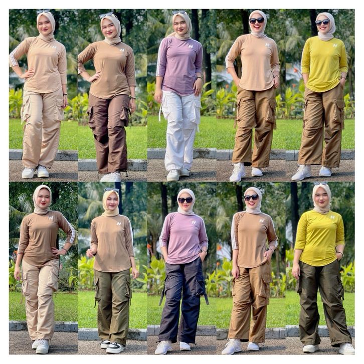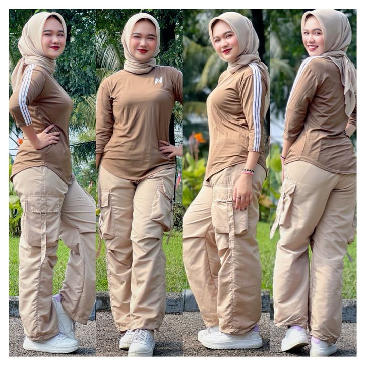 Setelan Olahraga Wanita Muslimah Mix Atasan N Petir Warna Nude Harajuku Parasut & Spandek Polyester Untuk Zumba Gym