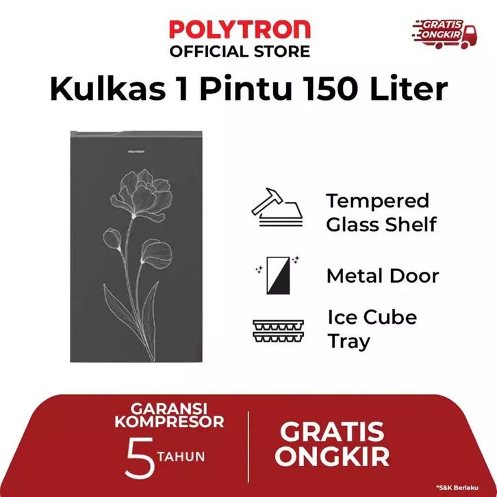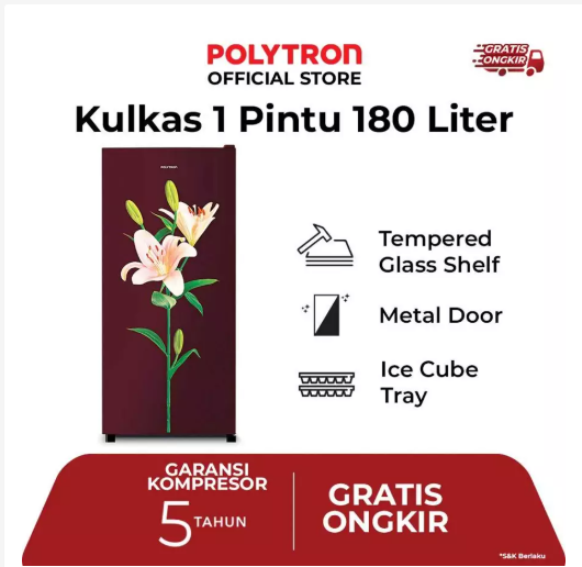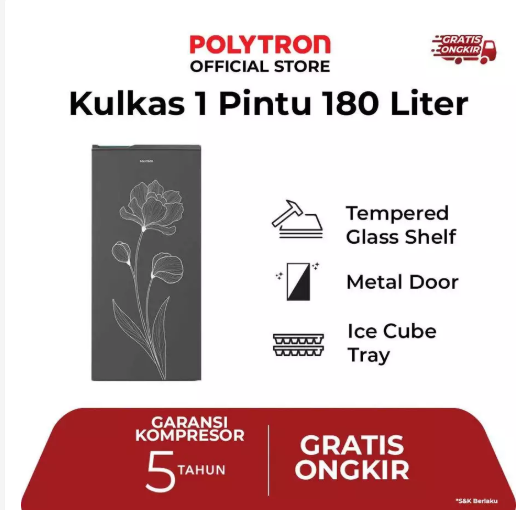 KULKAS 1 PINTU POLYTRON METALLIC SERIES 180 170 150 LITER PRB 187PR LEMARI PENDINGIN ES MINUMAN DINGIN MINI MURAH