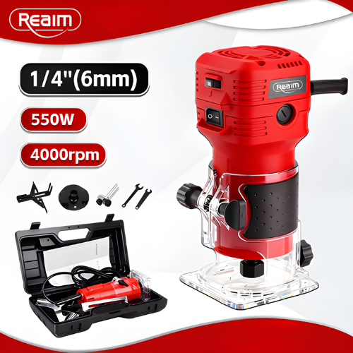 MESIN PROFIL ROUTER TRIMMER KAYU REAIM XBJ001 WOOD 550 W 1 SET LENGKAP MURAH TERBARU