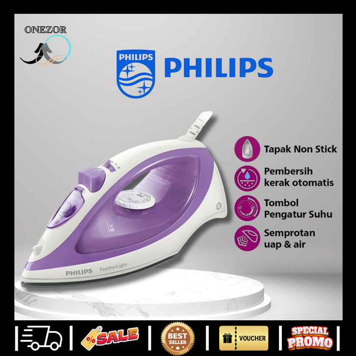 [Star] Philips Setrika Uap GC1418/35 Ungu - Setrika Uap Optimal, Tapak Non-Stick, Setrika Uap