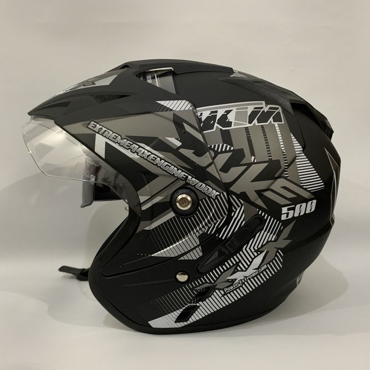 Helm JP 7 Juke Abu-Abu Doff SNI Dewasa Motif - Dua Kaca - Double Visor - Helm SNI - Helm Dewasa - Helmet