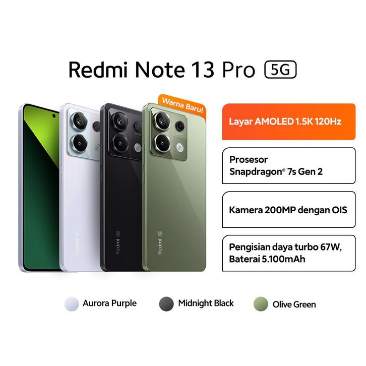 HP XIAOMI REDMI NOTE 13 PRO 4G 5G 8/128GB 8/256GB BARU ORIGINAL GARANSI RESMI OFFICIAL MURAH FREE ONGKIR TANPA DP