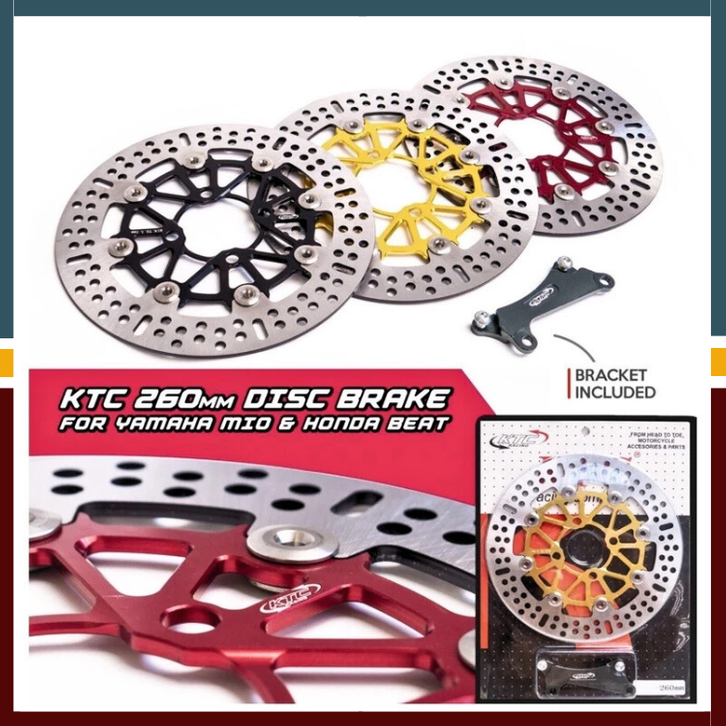 PIRINGAN CAKRAM KTC RACING BEAT MIO 260MM HOLE 4 CNC FLOTING KANCING STANLES PLUS BREKET CNC DISC BRAKE MIO SMILE S